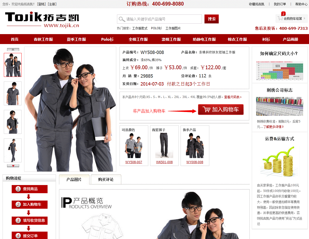 点击加入购物车按钮,将产品加入购物车,进入购物车页面。