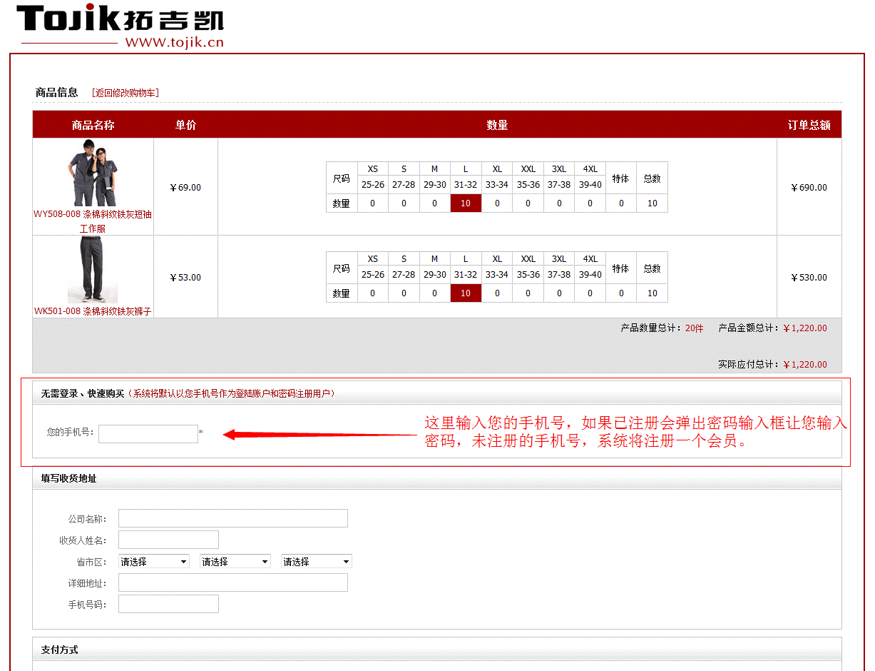 拓吉凯实行会员制。如需在拓吉凯网站购买商品,必须要注册一个会员。注册会员后,可登录拓吉凯网站查询交易记录、修改会员密码、管理收货地址、评论购买过的产品、秀单等等。